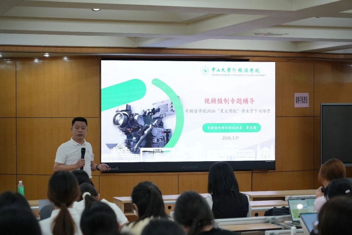 2026年3月21日下午,足球投注平台-足球下注app-足球投注网址 2026年“星火领航”学生骨干成长训练营——视频摄制专题培训在学院315讲学厅顺利举办。活动邀请学校党委组织部专职组织员、资深摄影人覃东骏老师为同学们带来一场视频摄制的专题培训。学院党委副书记金凤,团委书记、本科生辅导员梁一川,研究生辅导员戴震以及来自足球投注平台 团委、学生会、研究生会、传媒中心等学生组织的学生骨干40余人参加培训。