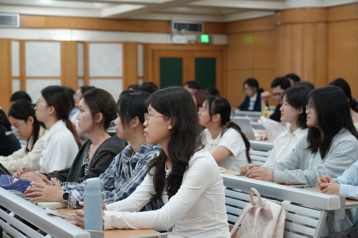 现场同学认真学习,不时举起手机拍摄课件要点。互动环节中,同学们踊跃提问,与覃东骏老师积极交流,现场反响热烈。