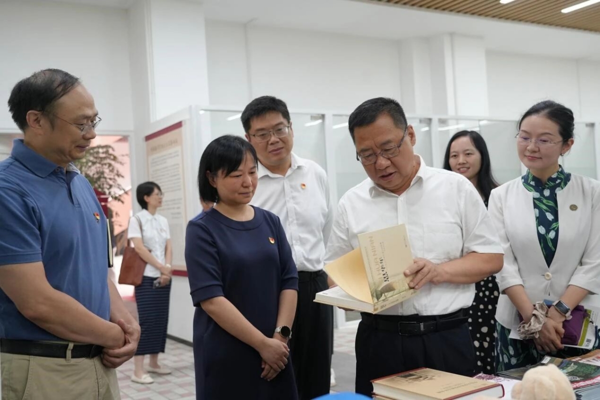 朱孔军书记、张琪副书记一行在百年院史专门展区前驻足,翻阅百年院史稿等书籍,了解学院发展历程、学科特点及人才培养特色。