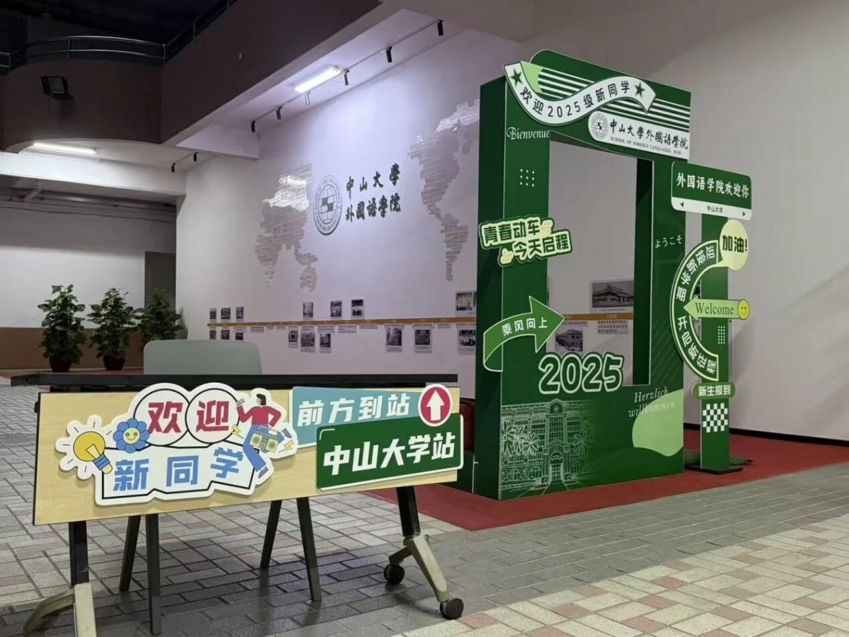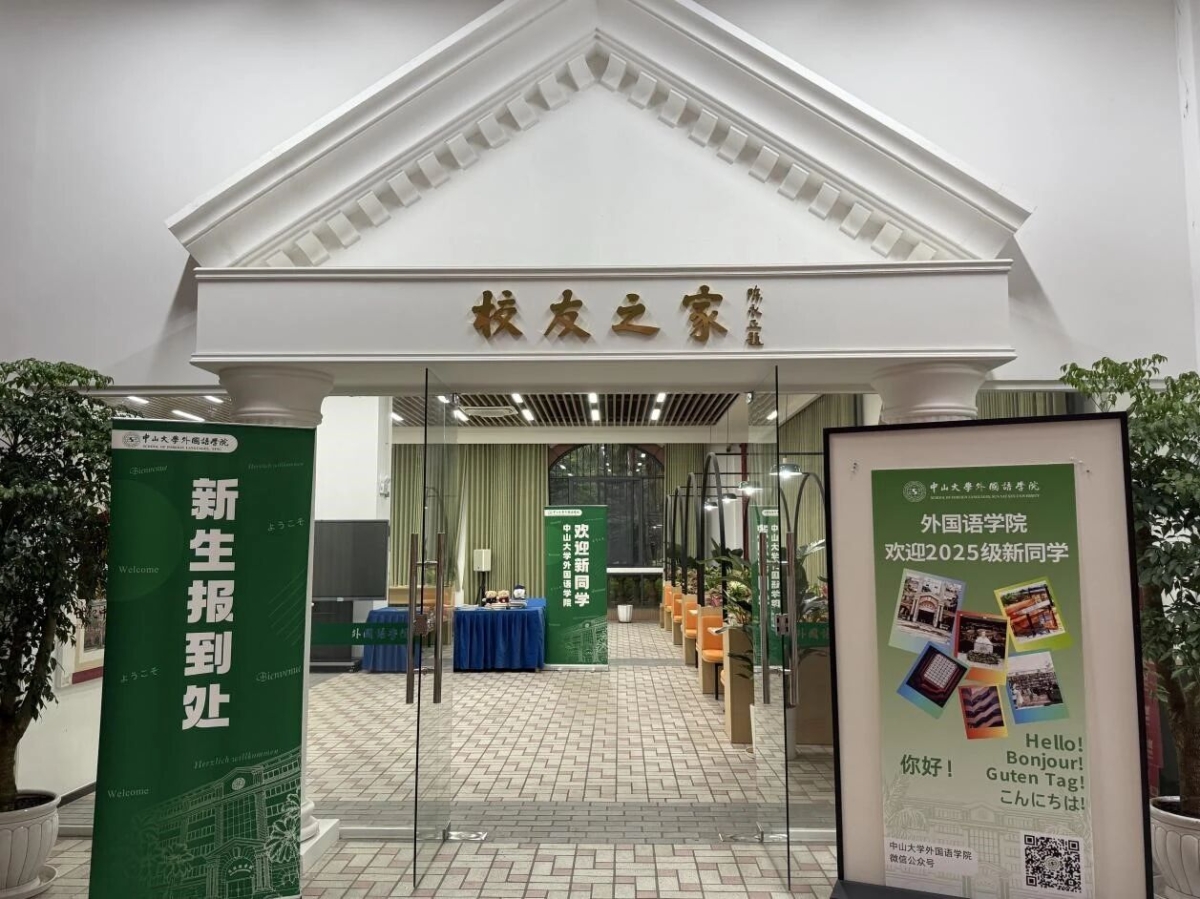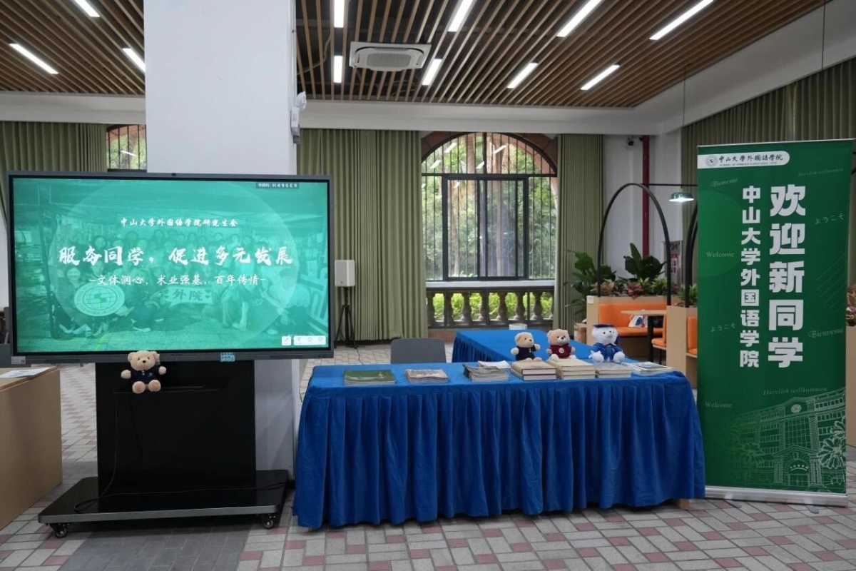 新生们在踏入康乐园、走进外院大楼的瞬间,感受着古朴典雅的校园风景和学院风貌,体悟着百年中大、百年外语发展的深厚底蕴与历史积淀。为了让每一位新生对外语学科发展百年有更为深刻的理解和认识,学院在院楼“校友之家”迎新点位,设置了一个特殊的展位,专门展出《中山大学外语学科百年史稿(1924-2024)》、《感华年——中山大学外语人的故事》、《读者》“世纪中大·百年外语”专刊等三本代表性出版物,皆于去年百年校庆、院庆期得以推出,集中展示了外语学科光辉灿烂的百年发展历程,供新生随取翻阅,其中,《读者》“世纪中大·百年外语”专刊,是学院新生大礼包中一份特殊的礼物,让外院研究生新生自入学报到第一天,就能从这些读物中感怀峥嵘岁月,感悟办学底蕴,传承文化传统,赓续学科发展,汲取奋进力量。