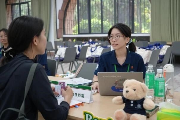 晨光微熹,学院一楼“校友之家”已是一片忙碌而温馨的景象——志愿者们早早到位,在各点位做好准备工作,以饱满的热情迎接每一位新同学的到来。